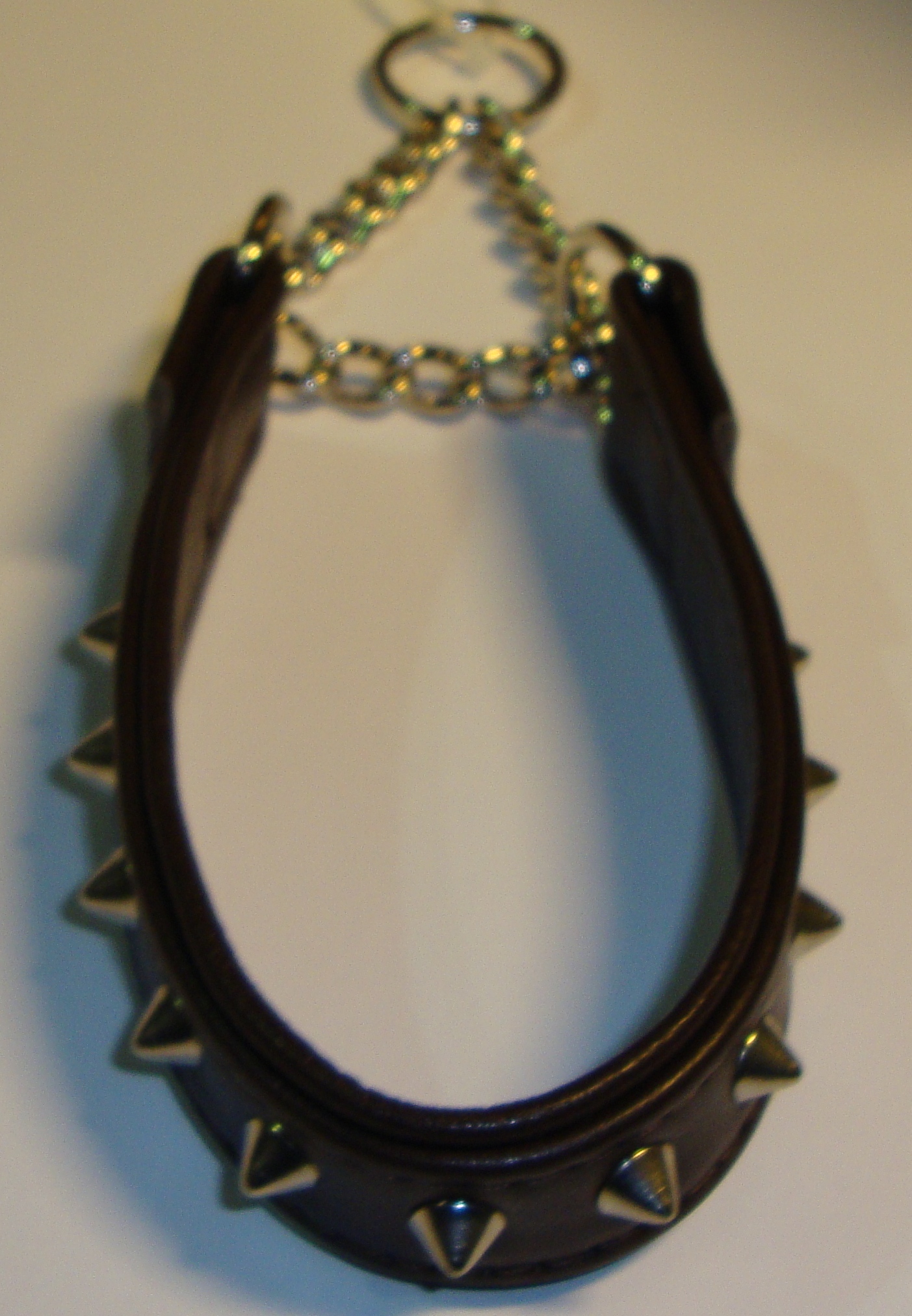 Puolikuristava vahva niittipanta, jossa vuoriosa kaksinkertaista pehmeää nappanahkaa, päälliosa nahkaa.Ketju on kestävää 2,5 mm niklattua terästä.