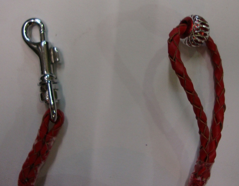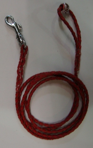 Näyttelytalutin punottua nahkaa, pyöreä, pituus n. 110 cm.Saatavana joko kullan- tai hopean värisellä lukolla.lukon pituus n. 4 cm.