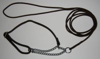 Näyttelyhihna jossa ketju ja säädettävä pantaosa. Hihnaosan paksuus 5 mm ja pituus 120 cm. Pantaosan leveys 7mm.