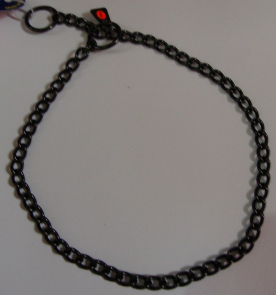 Kokokuristava musta ketjupanta, sopii tummille sekä mustille koirille varsinkin näyttelyyn.Panta on valmistettu 2 -2,5 mm vahvuisesta metallista, hitsatut lenkit.