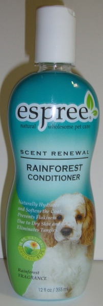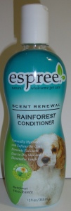 Espree Rainforest Conditioner 355 ml Auttaa ihoa ja turkkia uusiutumaan.Luonnollinen hoitoaine. Tehohoito.Tuuheuttaa.